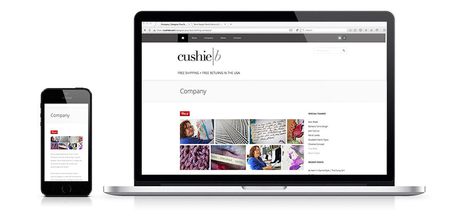 Fashion designer and cushie b founder Valerie Thompson saw the need for herself and other full-figured women to have an expanded range of fashion options. So Thompson created her company offering a full line of plus-size clothes that are stylish, timeless and beautiful. She came to us to help her launch and maintain her business.